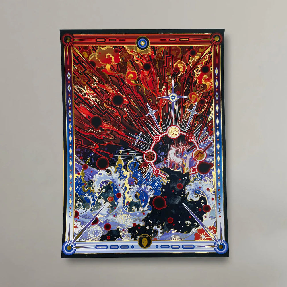 "Sun God" - Plaque métallique Holographique 60x40cm