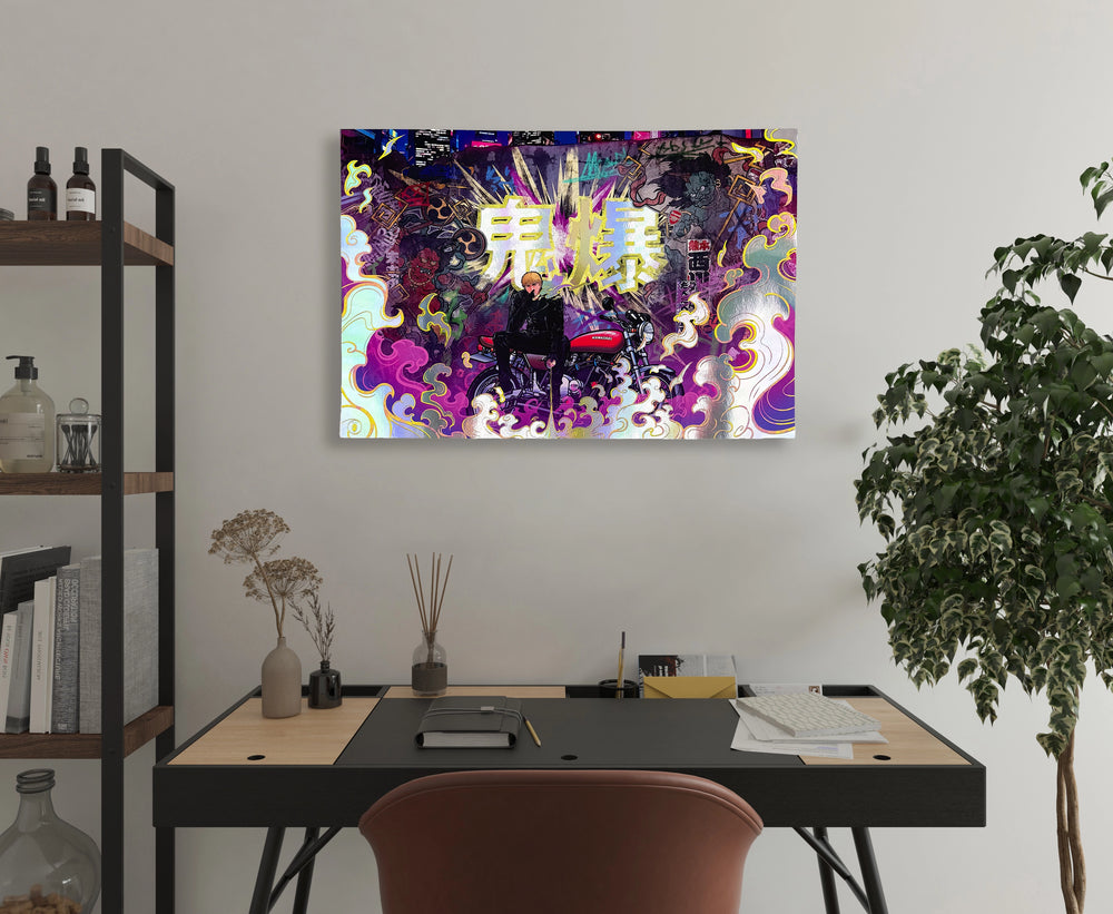 "The Biker II" - Plaque métallique Holographique 60x40cm
